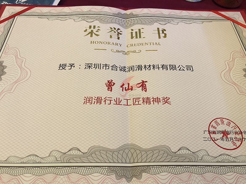 特別值得一提的是,本屆會議同步頒布了第一屆潤滑行業工匠精神獎,用以表彰在會員單位中長期從事潤滑行業及相關工作的優秀忠誠從業人員。其中,合誠潤滑的一線資深員工曾仙有、彭寧兩位獲得了工匠精神獎。他們擁有十年以上的潤滑油脂行業經驗,且技術精湛,專業知識深厚,為公司及行業發展做出了自己的一份貢獻。此次獲獎,實至名歸!