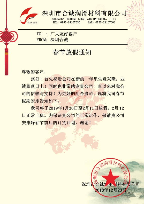 深圳合誠(chéng)2018年春節(jié)放假通知