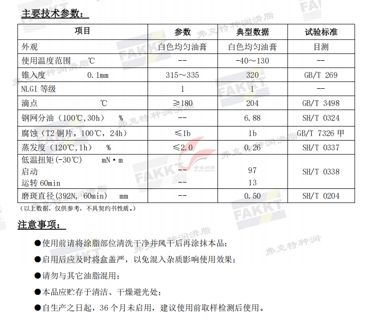FAKKT-MG 8030是皂基稠化合成油添加抗氧化、抗腐蝕等添加劑精制而成的長效潤滑脂。